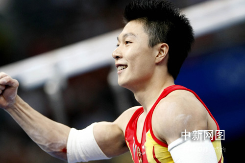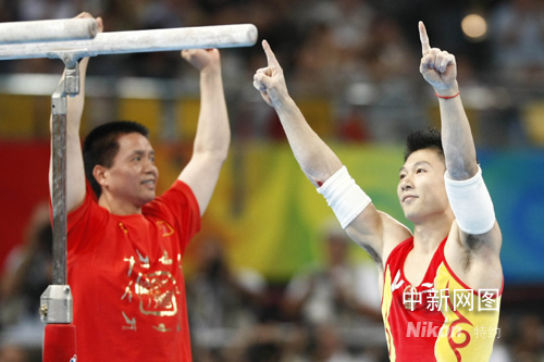 8月19日,中國選手李小鵬以總分16.450奪得北京奧運(yùn)會體操男子雙杠金牌。中新社發(fā) 盛佳鵬 攝