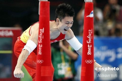 圖:中國選手李小鵬奪得男子雙杠冠軍(2)