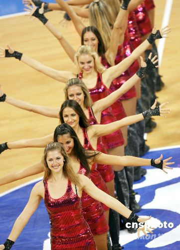 8月19日,中國女籃在北京奧運(yùn)會(huì)四分之一決賽中以77:62力克白俄羅斯,率先殺入4強(qiáng)。圖為拉拉隊(duì)的精彩表演。中新社發(fā) 武仲林 攝