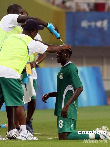 8月19日,北京奧運(yùn)會男足半決賽,尼日利亞以4:1大勝比利時,晉級奧運(yùn)男足決賽。圖為尼日利亞球員用“洗頭”的方式來慶祝勝利。中新社發(fā) 湯彥俊 攝
