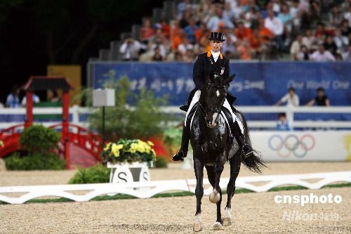 八月十九日晚,荷蘭選手安基·范格林斯芬駕坐騎“薩林雷羅”,在香港沙田奧運(yùn)馬術(shù)盛裝舞步個(gè)人賽上,演繹“人馬合一”,技壓群雄,獲得該項(xiàng)目金牌。她是連續(xù)三屆奪得該項(xiàng)的奧運(yùn)冠軍。 中新社發(fā) 洪少葵 攝