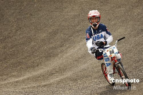 小輪車男子競速賽美國選手貝內(nèi)特帶傷完成比賽