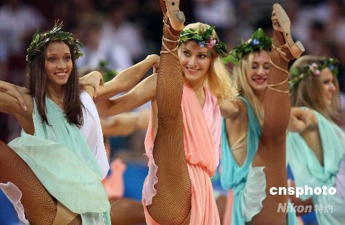 8月20日午夜時(shí)分,北京奧運(yùn)會(huì)男籃四強(qiáng)爭(zhēng)奪戰(zhàn)在五棵松籃球館結(jié)束,南美洲冠軍、雅典奧運(yùn)會(huì)冠軍阿根廷隊(duì)、美國(guó)“夢(mèng)八隊(duì)”、立陶宛隊(duì)和西班牙隊(duì)闖入前四。比賽間隙,烏克蘭美女啦啦隊(duì)上演驚艷四射的“魅力之舞”。中新社發(fā) 任晨鳴 攝