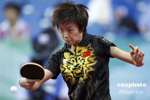 8月21日,北京奧運(yùn)會(huì)乒乓球女子單打第四輪的比賽在北京大學(xué)體育館進(jìn)行,中國(guó)選手張怡寧4比1戰(zhàn)勝日本選手福原愛晉級(jí)下一輪比賽。中新社發(fā) 盛佳鵬 攝