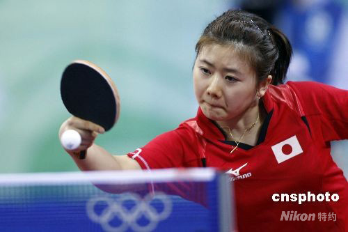 8月21日,北京奧運(yùn)會(huì)乒乓球女子單打第四輪的比賽在北京大學(xué)體育館進(jìn)行,日本選手福原愛(ài)不敵中國(guó)選手張怡寧遭淘汰。 中新社發(fā) 盛佳鵬 攝