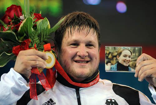 在當(dāng)天的男子105公斤以上級(jí)比賽中,對(duì)亡妻的思念幫助這位來(lái)自德國(guó)的力士完成了驚人的一舉。26歲的馬•施泰納在奪金后激動(dòng)地表示,他的亡妻蘇珊在比賽中一直陪伴著他,給予他奪金的勇氣。