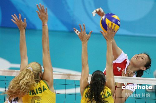 8月21日,中國女排在北京奧運會女排半決賽中以0:3負于巴西隊,無緣決賽。中新社發(fā) 武仲林 攝