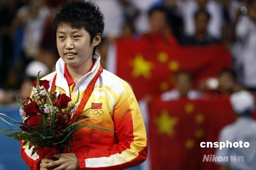 8月22日晚,在北京大學(xué)體育館進(jìn)行的乒乓球女子單打銅牌爭奪戰(zhàn)中,中國選手郭躍以4-2戰(zhàn)勝新加坡選手李佳薇,為中國乒乓球代表隊(duì)贏得一枚銅牌。 中新社發(fā) 盛佳鵬 攝