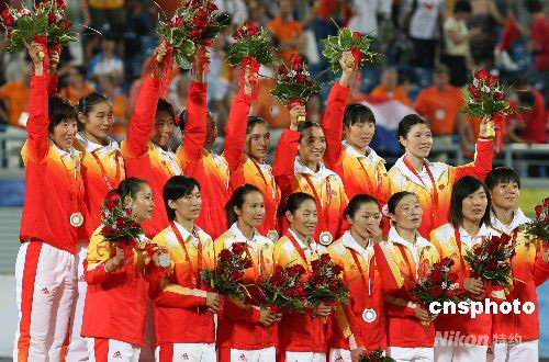 8月22日晚,中國女曲在北京奧運會曲棍球決賽中以0:2憾負荷蘭隊,收獲一枚銀牌,創(chuàng)下中國曲棍球項目有史以來的最好成績。 中新社發(fā) 武仲林 攝