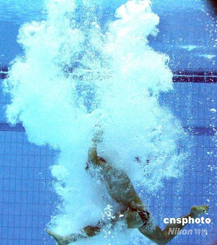 8月23日,北京奧運(yùn)會(huì)男子10米跳臺(tái)跳水半決賽在國(guó)家游泳中心“水立方”舉行。圖為精彩瞬間。中新社發(fā) 武仲林 攝