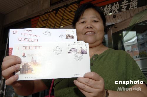 圖為市民展示搶購(gòu)到的郵票。