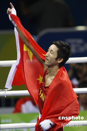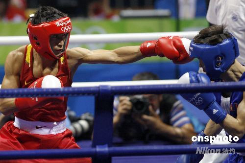 8月24日,北京奧運(yùn)會(huì)拳擊決賽在北京工人體育館全面打響。在男子輕量級(jí)(48公斤級(jí))決賽中,中國(guó)選手鄒市明以1-0戰(zhàn)勝蒙古選手普列布道爾吉·塞爾丹巴獲得冠軍。這枚金牌是中國(guó)拳擊奧運(yùn)史上的首枚金牌,也是中國(guó)代表團(tuán)在本屆奧運(yùn)會(huì)上獲得的第50枚金牌,亞軍由蒙古選手普列布道爾吉·塞爾丹巴獲得。 中新社發(fā) 盛佳鵬 攝