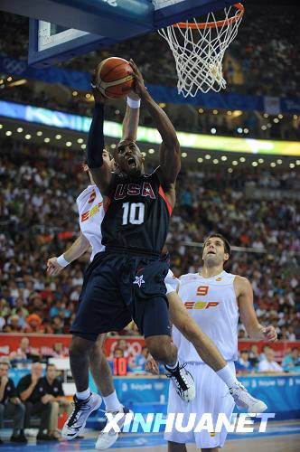 美國(guó)隊(duì)球員科比突破上籃。新華社記者 李俊東 攝