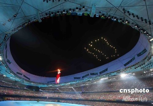 圖:奧運閉幕式“鳥巢”上空呈現(xiàn)煙花倒計時