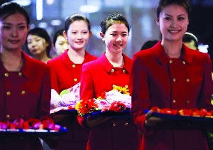 來自昌平職業(yè)學校的嚴冬是這次奧運禮儀志愿者中為數(shù)不多的男生,剛剛結(jié)束奧運鳥巢VIP服務的他即將在首都機場外幣兌換窗口上崗。另一位美麗的禮儀小姐郭彤在結(jié)束奧運頒獎禮儀的志愿服務后也被首都機場的客艙服務錄用了。為了能在奧運禮儀服務中展示迷人微笑,他們每天訓練時都要要咬著一根筷子20多分鐘,保持露出6到8顆牙齒。