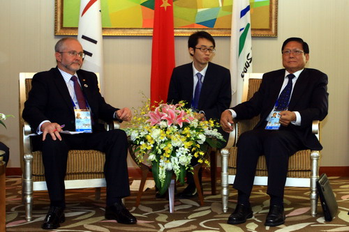 全國政協(xié)副主席、北京奧組委執(zhí)行主席鄧樸方,北京市委副書記、市長、北京奧組委執(zhí)行主席郭金龍,中殘聯(lián)副主席、北京奧組委執(zhí)行副主席湯小泉,北京市政協(xié)副主席趙文芝、北京奧組委執(zhí)行副主席兼秘書長王偉會見時在座。