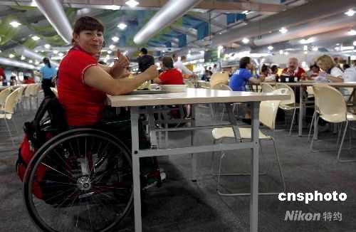 參加殘奧會(huì)的運(yùn)動(dòng)員在殘奧村餐廳舒適用餐。中新社發(fā) 杜洋 攝