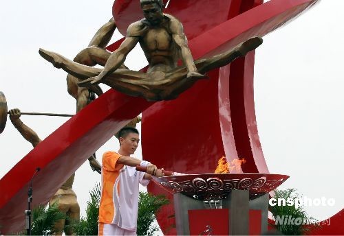 8月31日,最后一棒火炬手譚躍華在湘籍奧運(yùn)明星廣場點(diǎn)燃圣火盆,標(biāo)志著殘奧火炬接力長沙站的傳遞活動(dòng)圓滿結(jié)束。殘奧會(huì)“中華文明”線火炬?zhèn)鬟f第三站當(dāng)日在湖南長沙舉行,包括13名殘疾人火炬手在內(nèi)的70名火炬手將“超越、融合、共享”的殘奧會(huì)理念在星城手手相傳。中新社發(fā) 鄧霞 攝