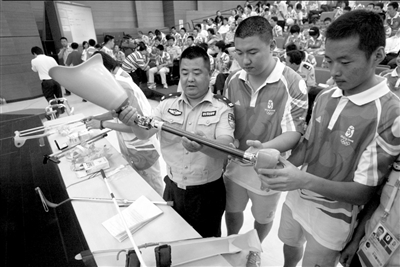 當天,在中國殘聯(lián)禮堂,殘奧會涉及的所有場館安檢員接受了培訓。警方除請來中國殘聯(lián)專家講解殘障人士的心理特點外,還專門收集了殘障人士常見的輔助工具,讓安檢人員現(xiàn)場熟悉。