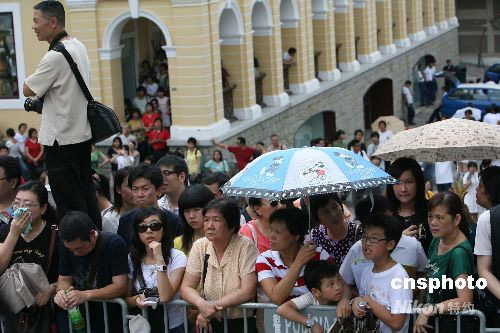 九月一日上午,北京奧運(yùn)內(nèi)地金牌運(yùn)動(dòng)員在澳門的第二日訪問行程,到名勝大三巴游覽,在牌坊前拍照合影。吸引大批市民一早到場(chǎng)等候,爭睹運(yùn)動(dòng)員的風(fēng)采。中新社發(fā) 洪少葵 攝