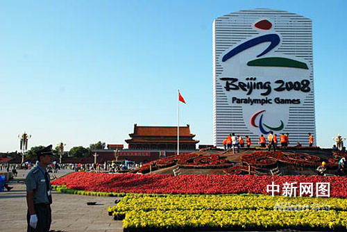 殘奧會(huì)會(huì)徽“天地人”亮相天安門廣場(chǎng)
