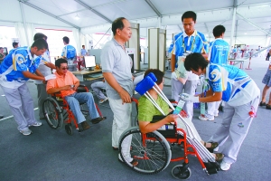 另?yè)?jù)《新京報(bào)》報(bào)道,開(kāi)幕式彩排的同時(shí)提前檢驗(yàn)了各安檢口的無(wú)障礙通道,昨日,多數(shù)乘坐輪椅的觀(guān)眾選擇了從奧林匹克公園公共區(qū)的東南安檢口進(jìn)入,一個(gè)區(qū)域撤掉了安檢門(mén),輪椅觀(guān)眾只需在此接受手檢。