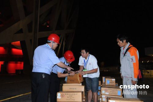 將在九月六日晚上演的殘奧會開幕式,主會場鳥巢將呈現(xiàn)宇宙星光的綺麗場景,焰火將打出流星等特殊星光造型,讓觀眾沿著流光溢彩的星光大道,步入北京殘奧會的“歡樂時空”。目前,鳥巢煙花已經(jīng)全部準備就緒。圖為工作人員在殘奧會開幕前夕在鳥巢安裝煙花。中新社發(fā) 熊迪 攝