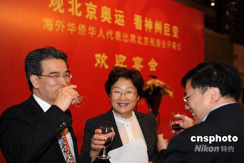 9月6日,國僑辦主任李海峰在北京向華僑華人代表敬酒。當日,國務院僑務辦公室舉行宴會,歡迎出席北京殘奧會開幕式的100位華僑華人代表。中新社發(fā) 廖攀 攝