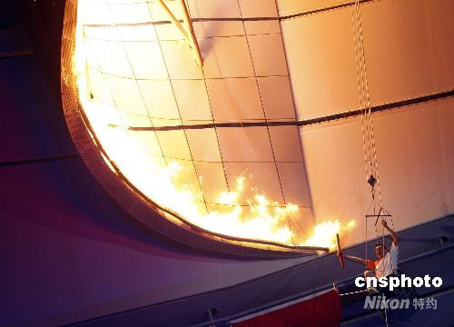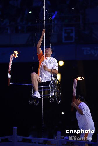 圖:侯斌獨特方式點燃北京殘奧會圣火