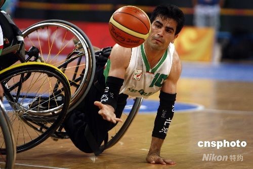 9月7日,北京殘奧會輪椅籃球首日比賽中,伊朗隊以73比62的比分戰(zhàn)勝南非隊。中新社發(fā) 杜洋 攝