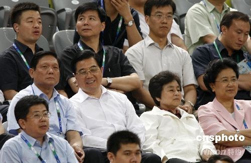 圖:胡錦濤觀看北京殘奧會輪椅籃球比賽