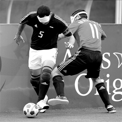 阿根廷(左)與西班牙的盲人球員在比賽中! ⌒氯A社發(fā)