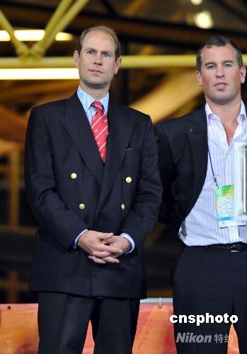 九月九日晚,英國皇室成員愛德華王子(左)到香港沙田觀看殘奧馬術(shù)項(xiàng)目比賽,為英國馬術(shù)隊(duì)員打氣,當(dāng)晚,馬術(shù)三項(xiàng)賽事中,英國隊(duì)奪得兩金一銀佳績。中新社發(fā) 鄧慶樂 攝