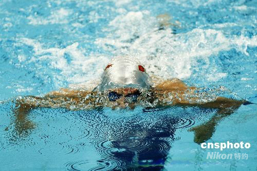 9月10日,北京殘奧會男子100米蛙泳SB9級決賽在北京國家游泳中心“水立方”舉行,最終南非選手凱文·保羅摘金。圖為西班牙選手哈維爾·克雷斯波在比賽中。中新社發(fā) 盛佳鵬 攝