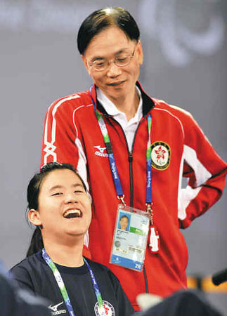 4年前雅典殘奧會(huì),首次參賽的中國香港硬地滾球隊(duì)一舉摘得兩金,可惜,摕o緣金牌!皬难诺浠貋碇笏恢焙芮趭^,就為了這塊金牌。在香港的時(shí)候,我們每周二、四、六晚上訓(xùn)練,每次訓(xùn)練兩小時(shí),遇到快要比賽的時(shí)候,周日會(huì)全天訓(xùn)練!惫藰s動(dòng)情地說:“這枚金牌是我們兩個(gè)人的夢想,終于實(shí)現(xiàn)了。”