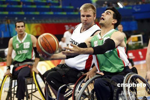 9月11日,北京殘奧會男子輪椅籃球小組賽A組加拿大隊與伊朗隊的比賽在北京國家體育館進行,最終加拿大93比62戰(zhàn)勝伊朗。中新社發(fā) 盛佳鵬 攝