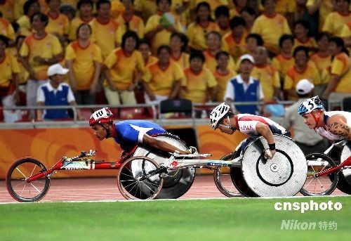 9月11日晚,北京殘奧會田徑比賽繼續(xù)在奧林匹克公園內(nèi)的國家體育場“鳥巢”舉行,在男子5000米-T54級決賽中,泰國選手巴越·沃霍倫一路領(lǐng)先,并在最后時刻頂住各路選手的反撲,在這個一直被歐美強手統(tǒng)治的項目中奪得冠軍。中新社發(fā) 任晨鳴 攝