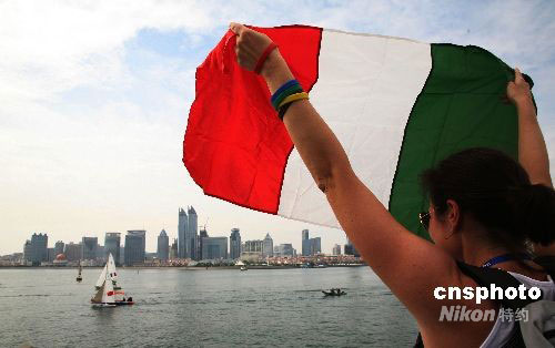 9月11日下午,北京殘奧會(huì)帆船比賽進(jìn)行第三個(gè)比賽日的比賽,當(dāng)參賽選手起航前往賽場(chǎng)時(shí),各國(guó)觀眾拿著標(biāo)語(yǔ)為選手加油。中新社發(fā) 王輝 攝