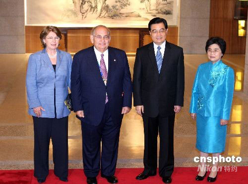 胡錦濤歡迎約旦親王拉阿德夫婦出席殘奧會閉幕式