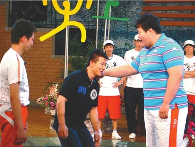 近日,在央視和中國文體明星助威團《國慶七天樂,參與奧運更快樂》拍攝現(xiàn)場,奧運會女子78公斤級柔道冠軍佟文騎著自行車來到了“奧林匹克花園社區(qū)”,剛從車上下來就看到同是奧運會體操吊環(huán)冠軍的“老鄉(xiāng)”陳一冰隨便把垃圾一扔,看在眼里的佟文很是不滿,“怎么亂扔垃圾啊!”佟文說著一個大巴掌把陳一冰給拍趴下了!還是主持人畢福劍考慮周到,把兩人叫到一邊說道:“咱們國慶要七天樂。 (李昊)
