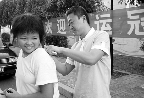 簽名、合影,幾乎成了馬琳昨天重復(fù)最多的兩個動作。馬琳則一概表現(xiàn)出巨大的耐心,全力配合。一位胖胖的小女孩一直跟隨了馬琳走出幾十米后還沒簽上名。“我不敢!”小女孩說?粗R琳走到訓(xùn)練館門前,即將上車,小女孩終于鼓起勇氣沖上前去要求馬琳簽名!敖o我簽在背上好嗎?”小女孩要求。馬琳于是轉(zhuǎn)到女孩身后,在女孩的衣服上鄭重簽下了自己的名字。
