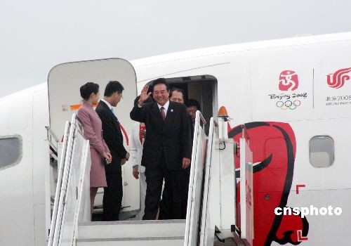 圖:陳云林乘包機(jī)抵達(dá)臺灣桃園機(jī)場