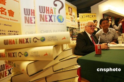 圖:前港督彭定康香港舉行新書簽名會