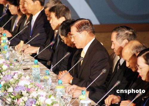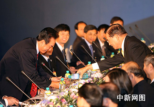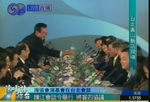 圖:會談間隙陳云林江丙坤互相倒水顯溫情