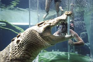 澳大利亞一公園設(shè)"死亡之籠" 游客與鱷共舞(圖)