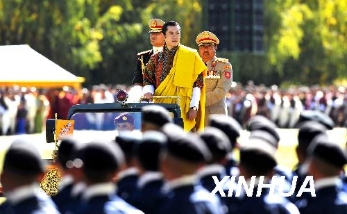 圖:不丹新國王發(fā)表加冕演說并檢閱軍隊(duì)