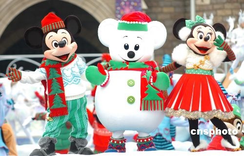 圖:東京迪斯尼推出“雪米奇”吸引游客