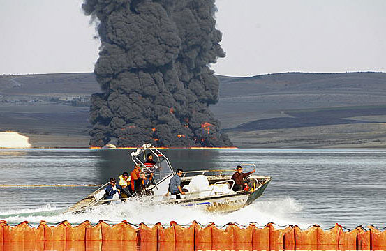 圖:伊土石油管線爆裂造成大量原油外泄