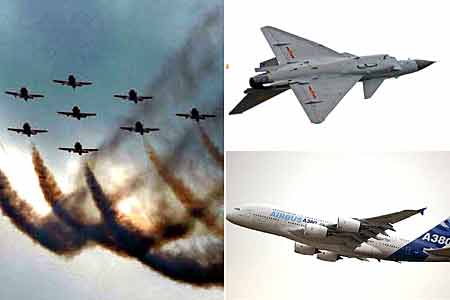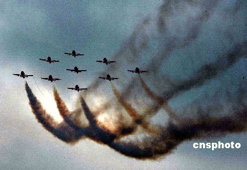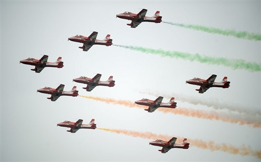 印度"陽光"特技飛行隊(duì)航展上進(jìn)行特技表演