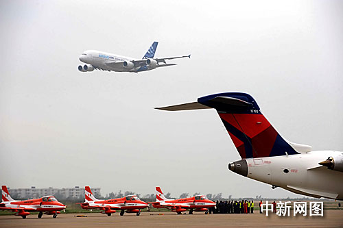 圖:空客A380巨無霸飛機(jī)翱翔珠海